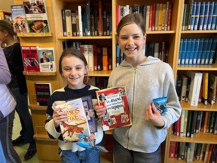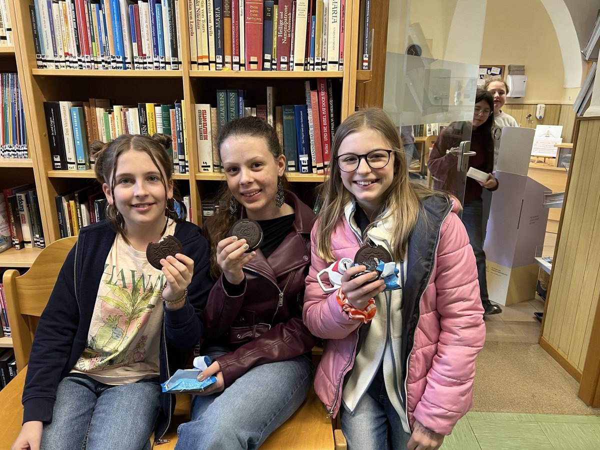 Als kleines Danke für die regelmäßige, zuverlässige Hilfe waren die Helfer:innen am Freitag nach Ostern zu einer „Book-Revelation-Party“ eingeladen. Als Allererste der gesamten Schulgemeinschaft durften sie ihre Nasen in die vielen neu eingelangten Bücher für die Schulbibliothek stecken. Es ist kaum zu glauben, aber als Prof. Wieser die neuen Bücher enthüllte, brandeten doch tatsächlich Jubel und Begeisterung auf. Wie warme Semmeln ging der frische Lesestoff dann auch über die Theke.